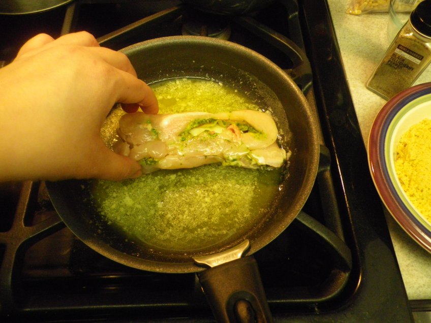 IMGP2053 Published January 29, 2012 at 4000 × 3000 in The Dinner Party – Roulade Style Chicken stuffed with Pesto, Proscuitto, and Fontina