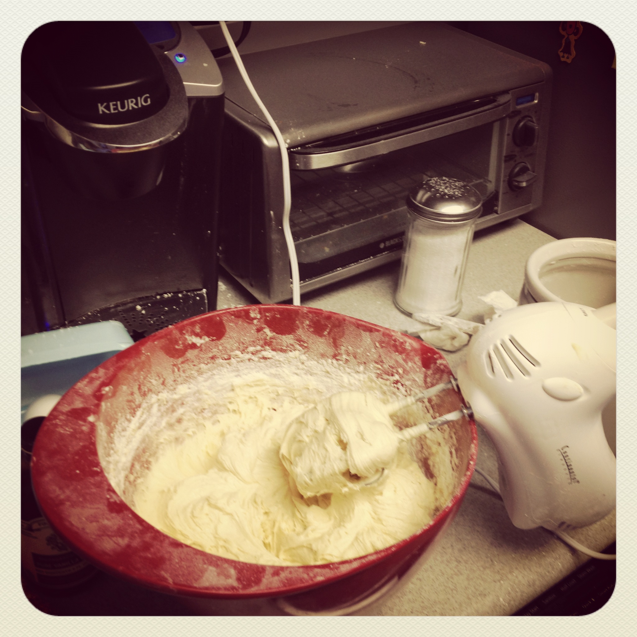 Feeble attempt at baking. Note the kitchen covered in powdered sugar and flour...