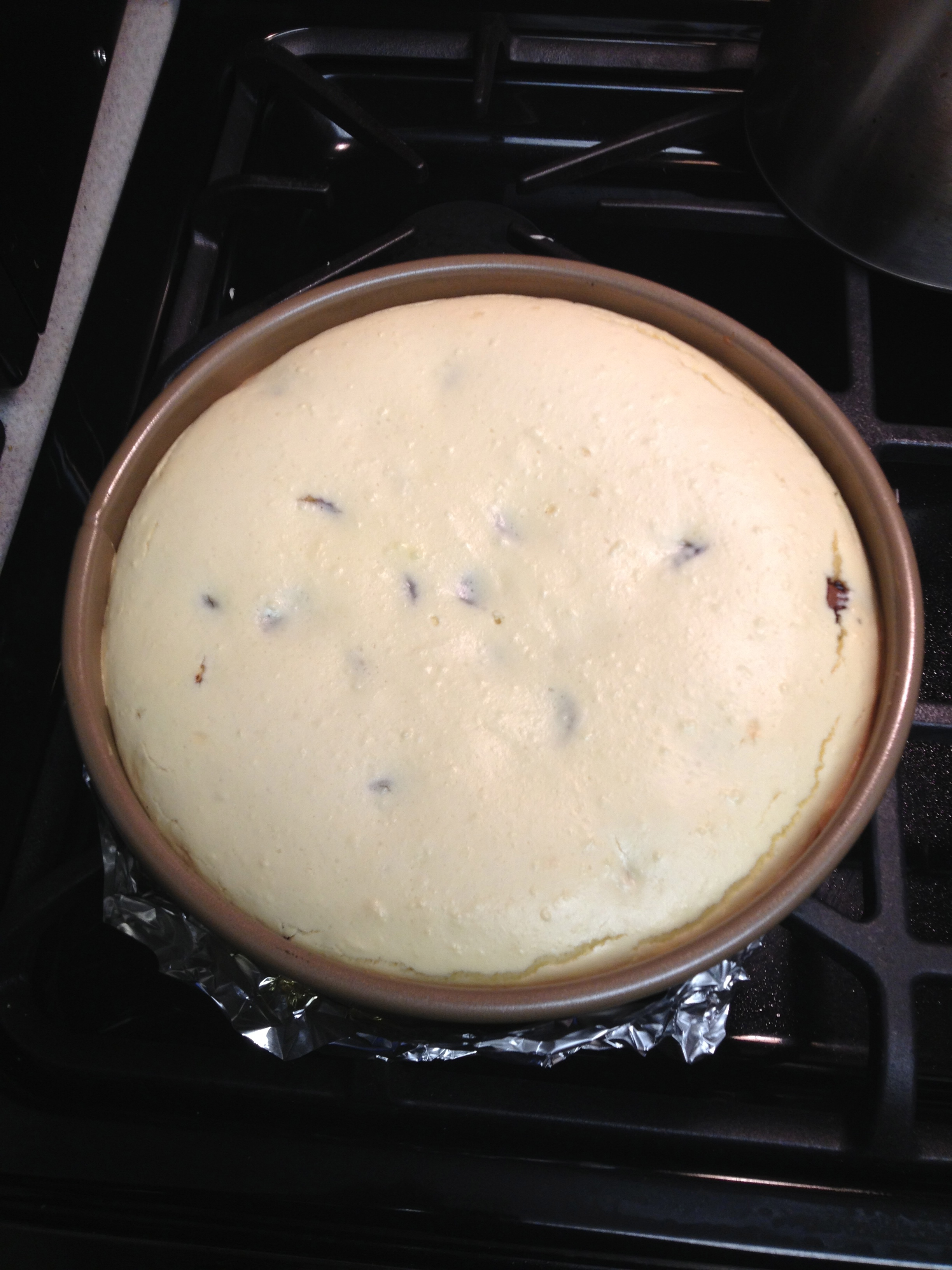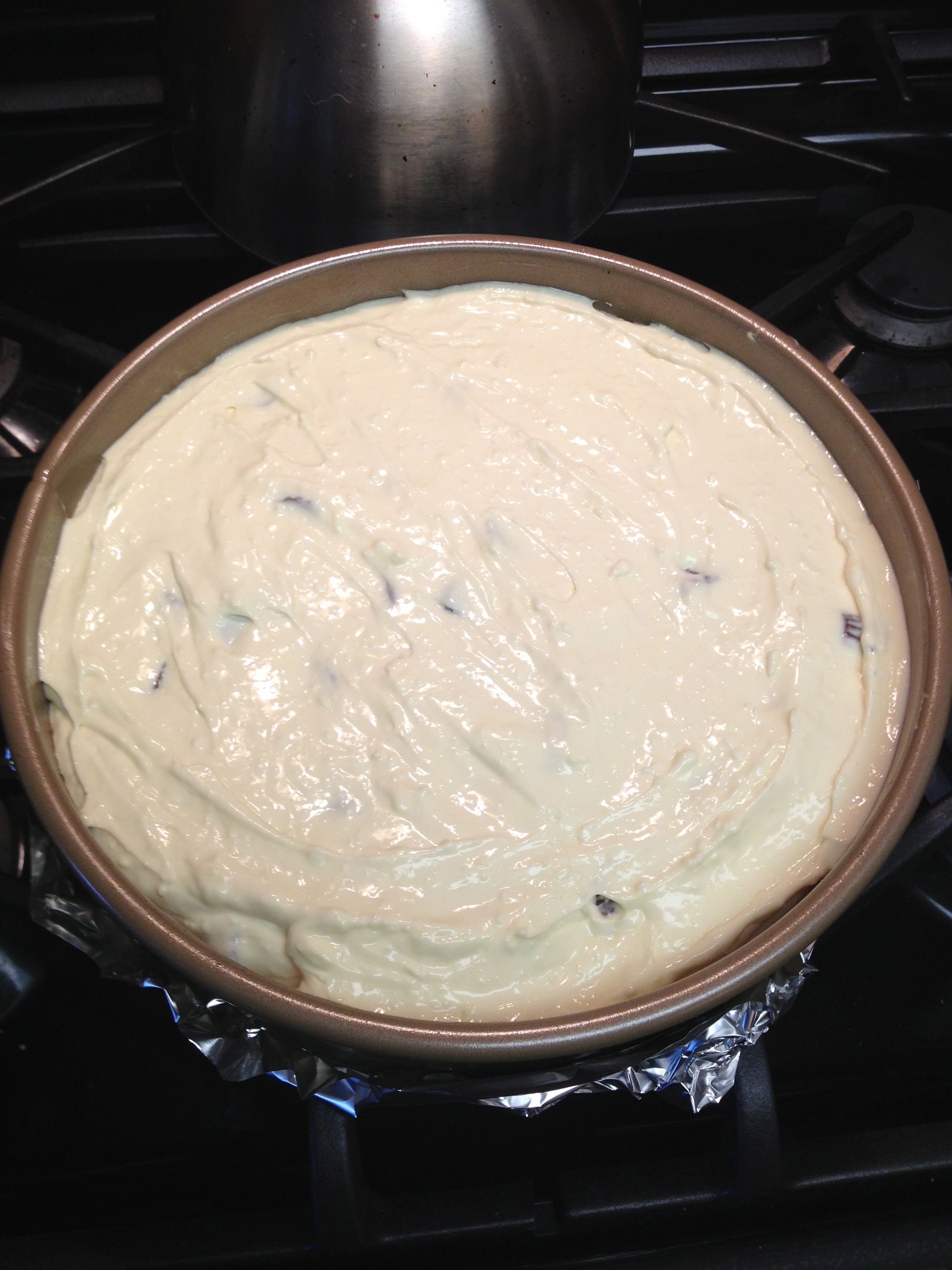 - Grease a 9-inch spring form pan with a bit of cooking spray.