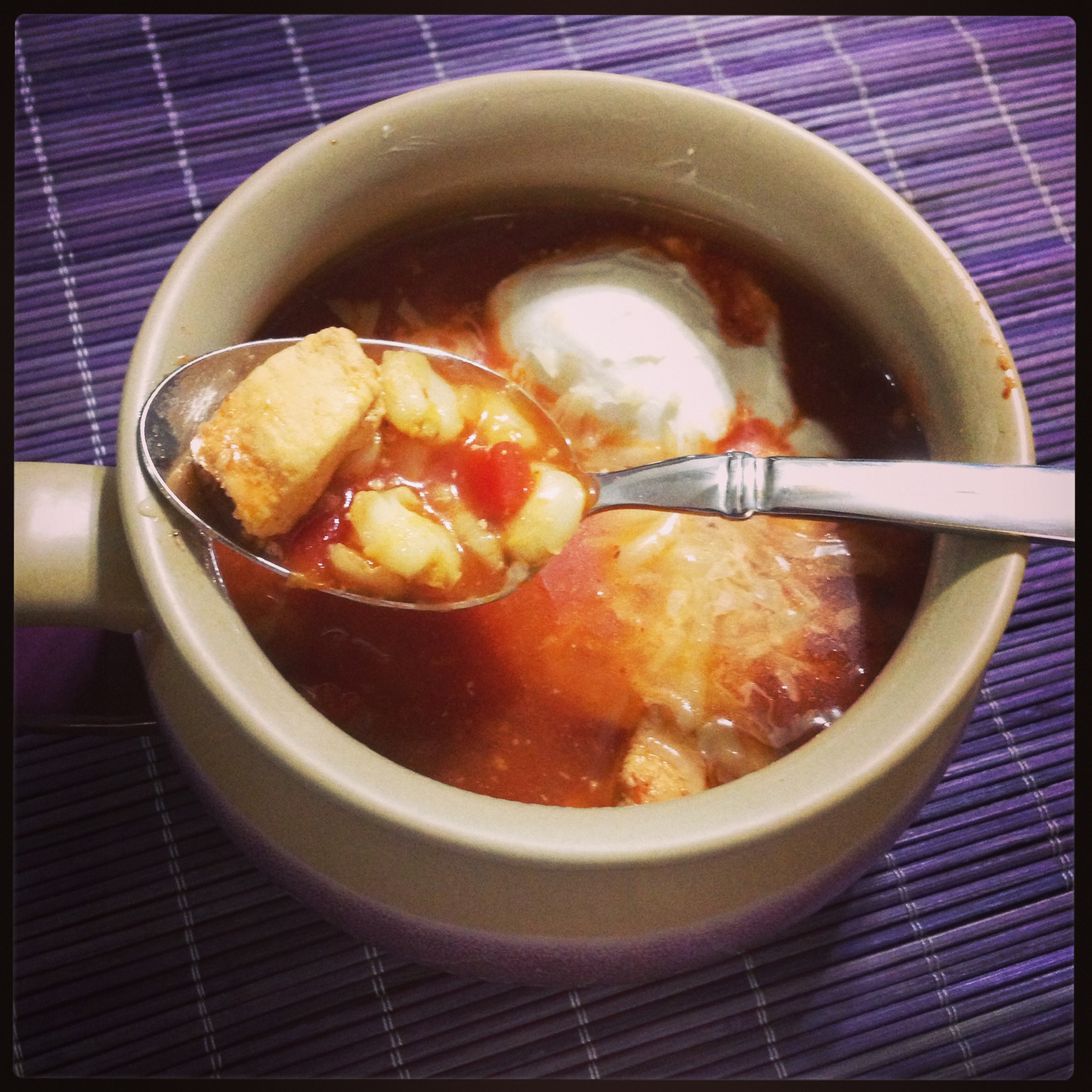 In any case, my mother saw a segment on the Today Show featuring Michael Lomonaco’s recipe for Turkey Pozole Soup. It ended up being way too spicy for her liking, but the flavor and heartiness stayed with me. Lately I had been craving some sort of Mexican style soup, so about two weeks ago I was playing around in my kitchen and I ended up modifying his recipe utilizing what was in my pantry and freezer (I had bought hominy a couple of weeks earlier). Since I work crazy hours, I do not keep a lot of fresh food in my apartment, I instead rely on my freezer and shelf-stable goods to whip up meals. It was a fun test of my skills, and I ended up loving the results.