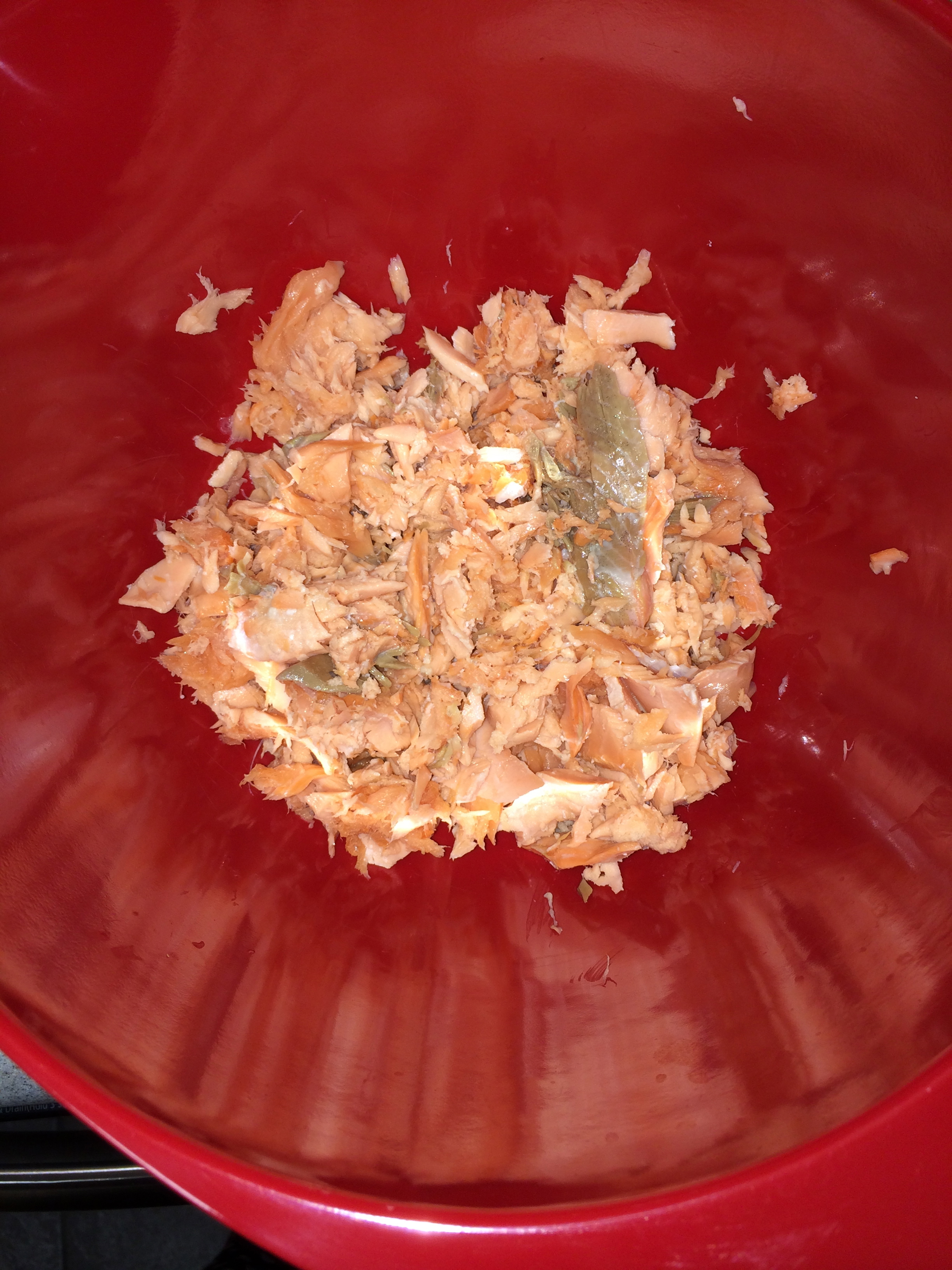 - Remove skin from salmon and discard. Crumble the meat into a bowl.