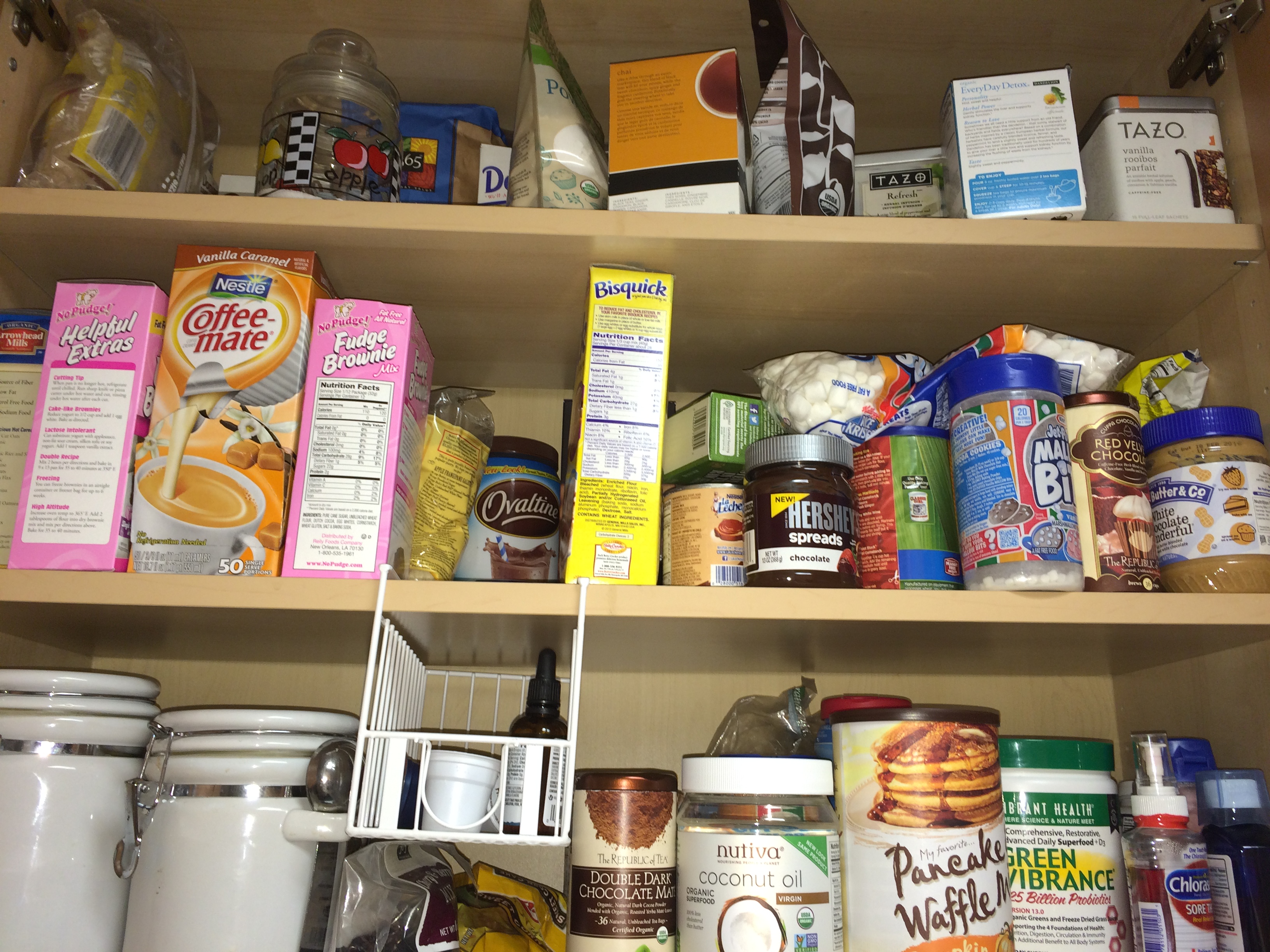 First things first…I have an addiction to food and food shopping. I have worked in some form of a food based business for nearly 19 years, and most recently I work for Whole Foods Market. One of my favorite things to do is to go to a store and just pore over everything in the aisles. I love seeing what is trendy, what is new, and getting inspiration for my next or future meals. I loved when business is a little slow and I can explore what was new and different. Through my obsession (and employee discount and knowledge of the best sales), I built quite the pantry. Translation – I am a borderline food hoarder. There is food in several different nooks and crannies throughout my condo.