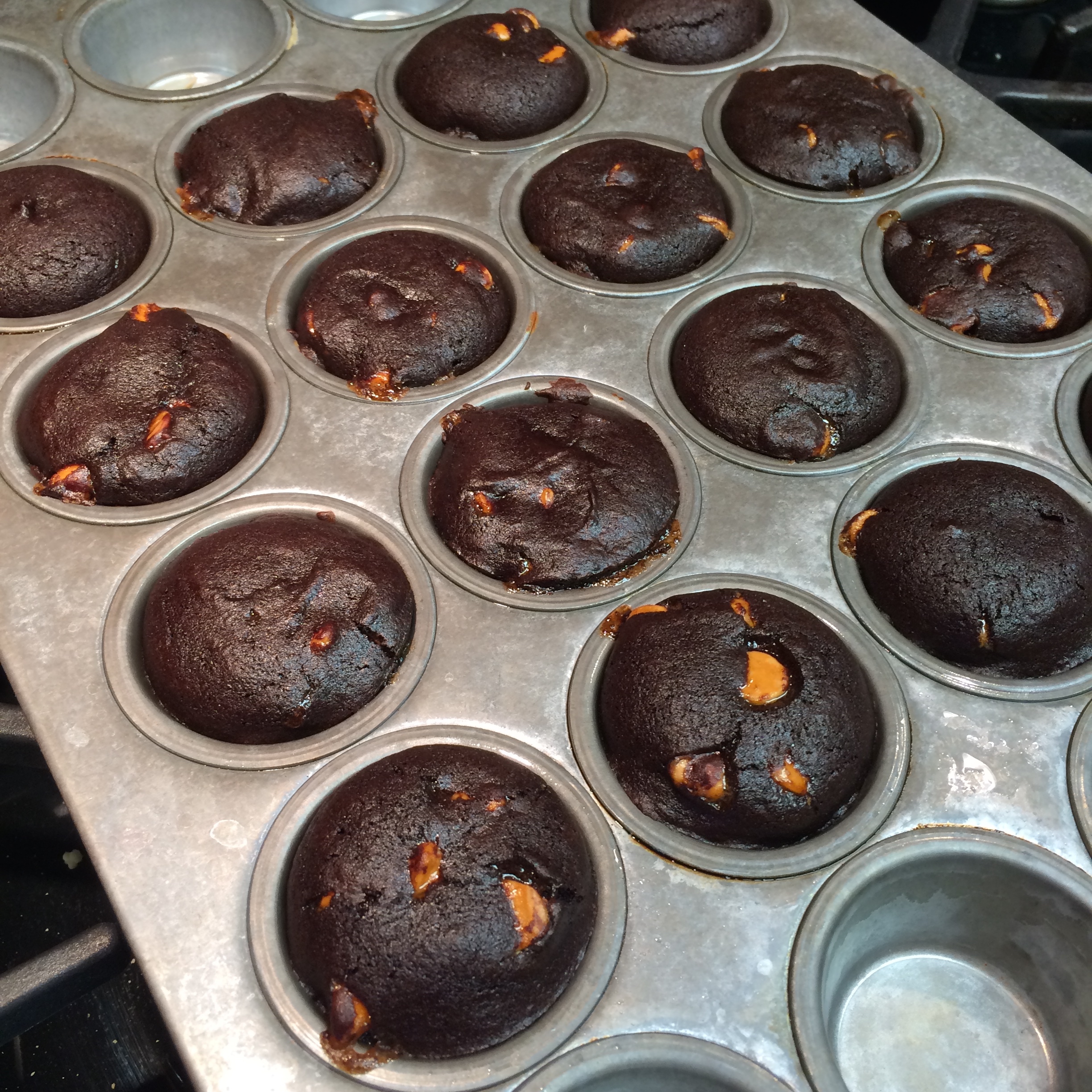 6. Using a large spoon or ice cream scoop, scoop out batter into 20 of the muffin tin cups