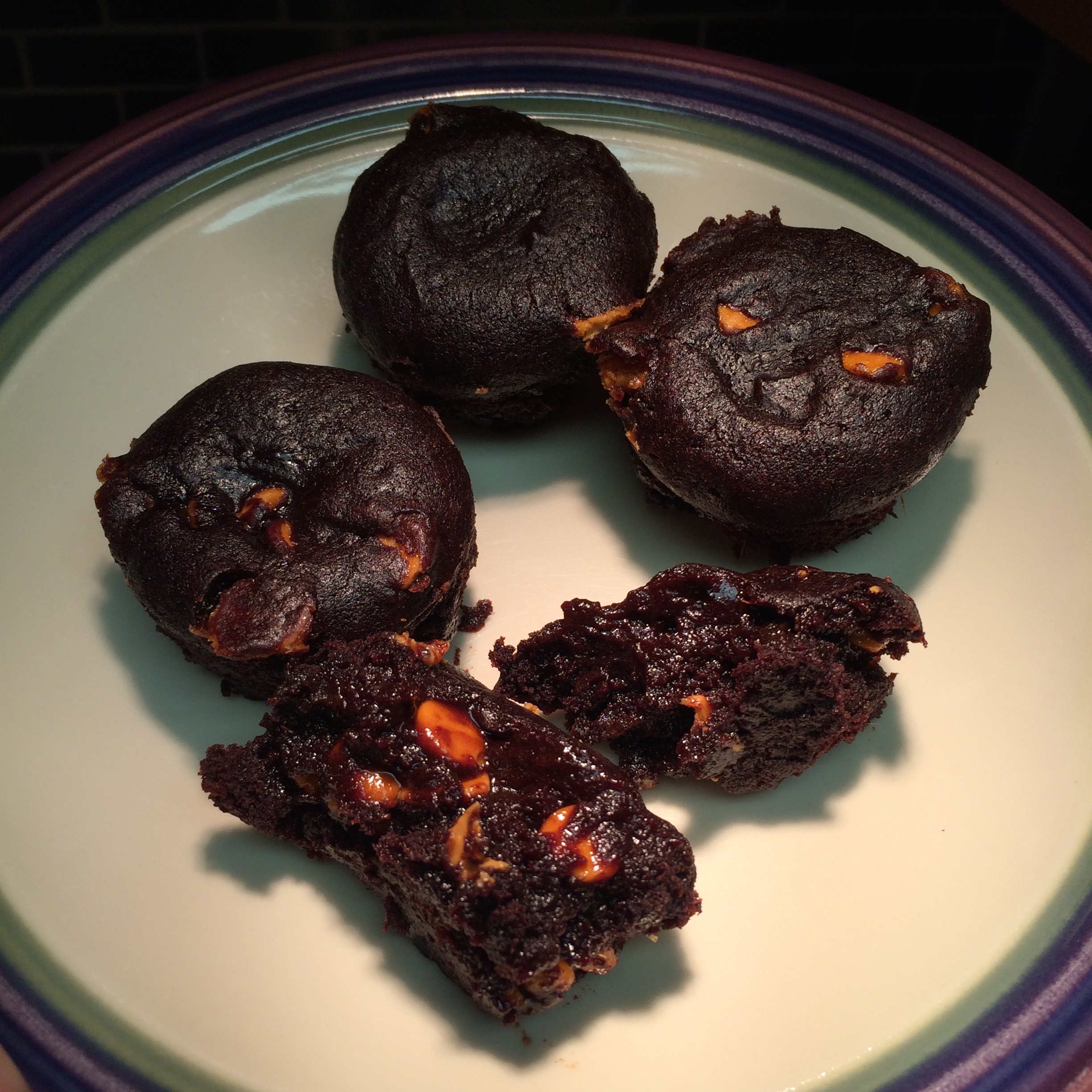No secret here – I love butterscotch chips. I also had an unopened box of No Pudge! Brownie Mix that was burning a hole in my chocolate craving, so I wanted to make brownies with the mix and use up some of my three bags of chips. Since making the Curry Aioli I was out of yogurt that the box’s recipe calls for. Surprisingly, I have no applesauce in the pantry, either, but I did have pumpkin and butternut squash. I decided to improvise and make little bites. So cute! (In my opinion…)