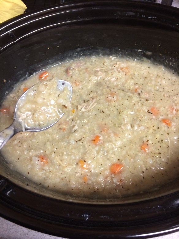 Today I decided to make a chicken and rice crockpot stew – just set it and forget it.
